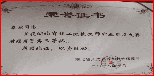 2018年8月榮獲湖北省第一屆湖北省技工院校(xiào)教師職業能力大賽財經商貿(mào)類三等獎