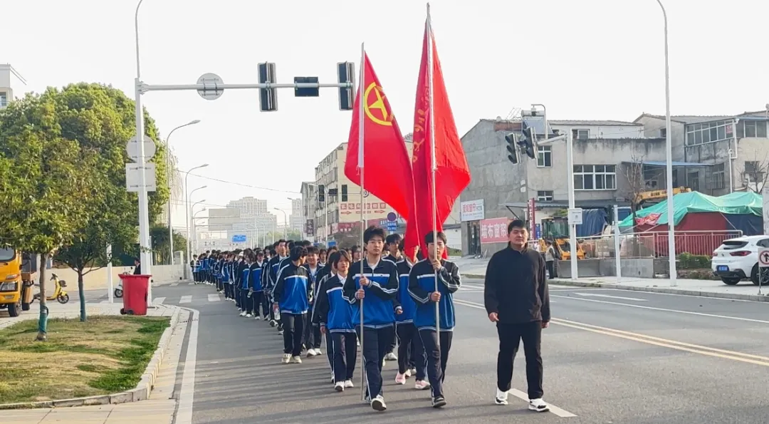清晨,150名師生列隊向著陵園出發。全程7公裏徒步前行,沒有一人喊(hǎn)苦喊累,沒有一人喧嘩吵鬧,隻有(yǒu)一(yī)行行堅毅的目光、一個個堅定的步伐,向(xiàng)著先烈們表達著深深的仰慕與崇敬。